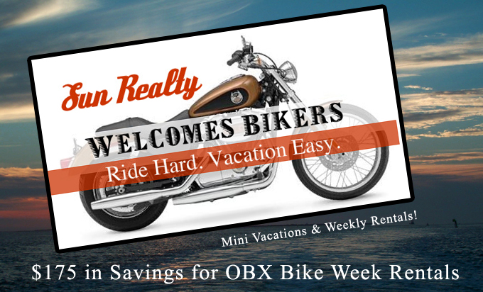 Sun Realty is proud to welcome OBX Bike Week vacationers. The 2010 event will take place April 17-25. We've even created a special offer just for Bike Week guests: